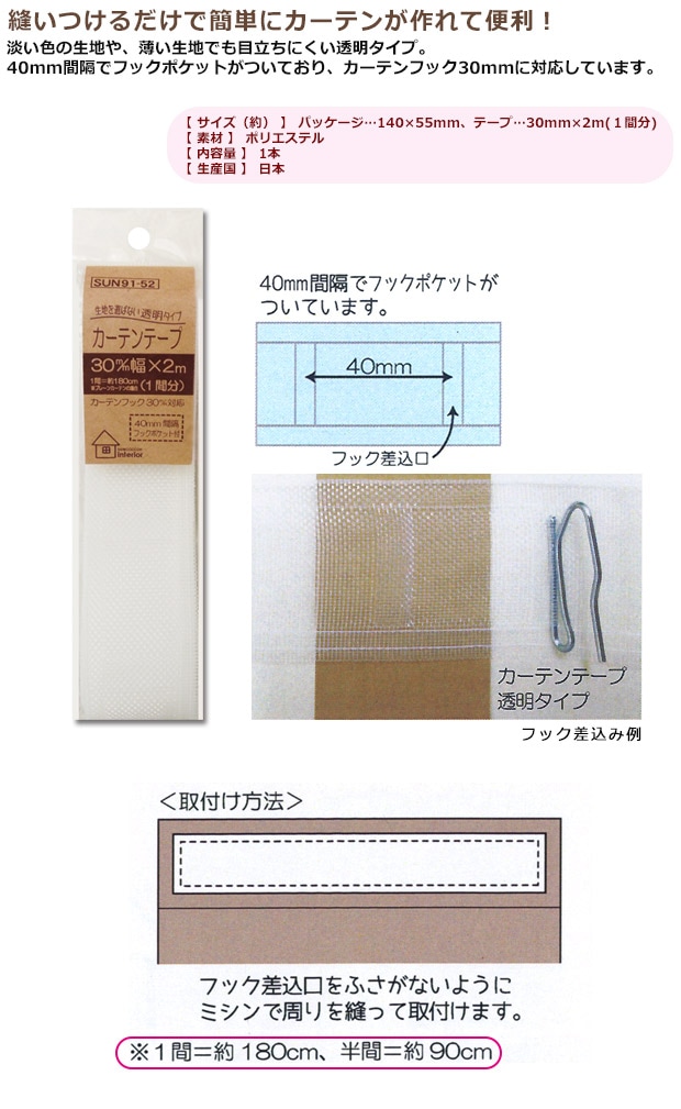 | サンコッコーインテリア カーテンテープ 透明タイプ 30mm巾 2m(1間分) SUN91-52 | |