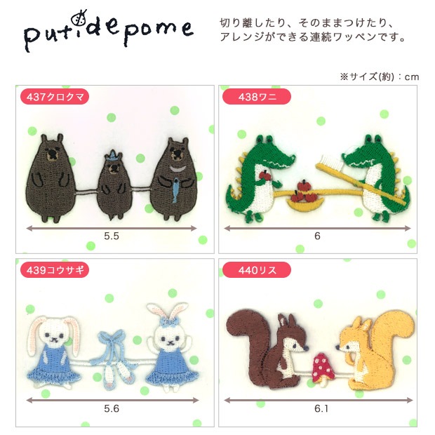 切り離したり、そのままつけたり、アレンジができる連続ワッペン。