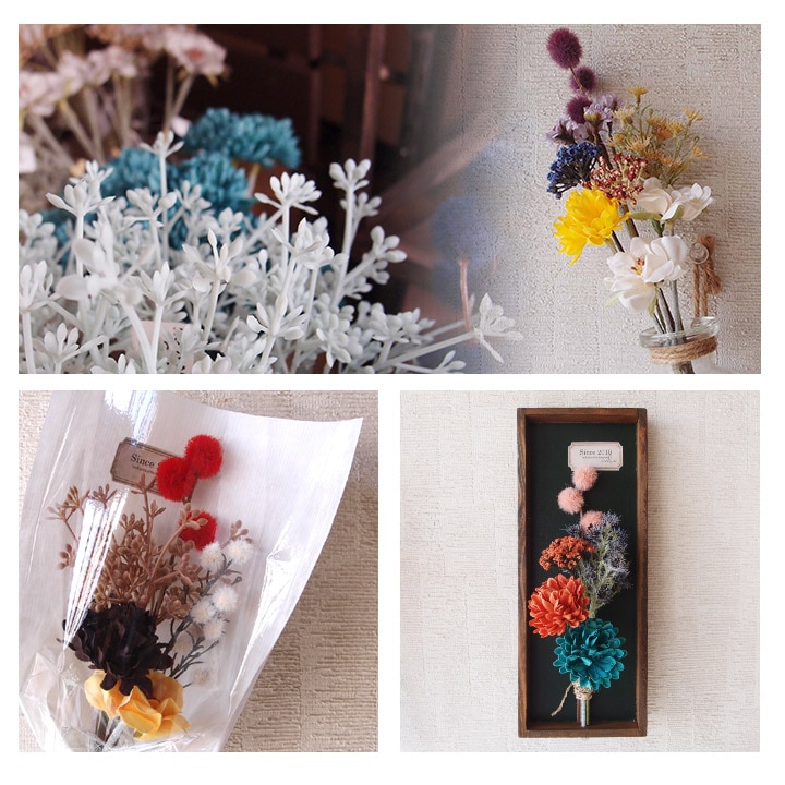 ドライフラワーの魅力をそのままに・・・人気のカラーで仕上げました。