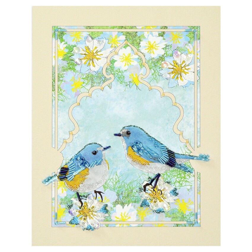 水彩画風のイラストの上にビーズでデコレーションするキット! 押し花をプラスしてもっと素敵に♪